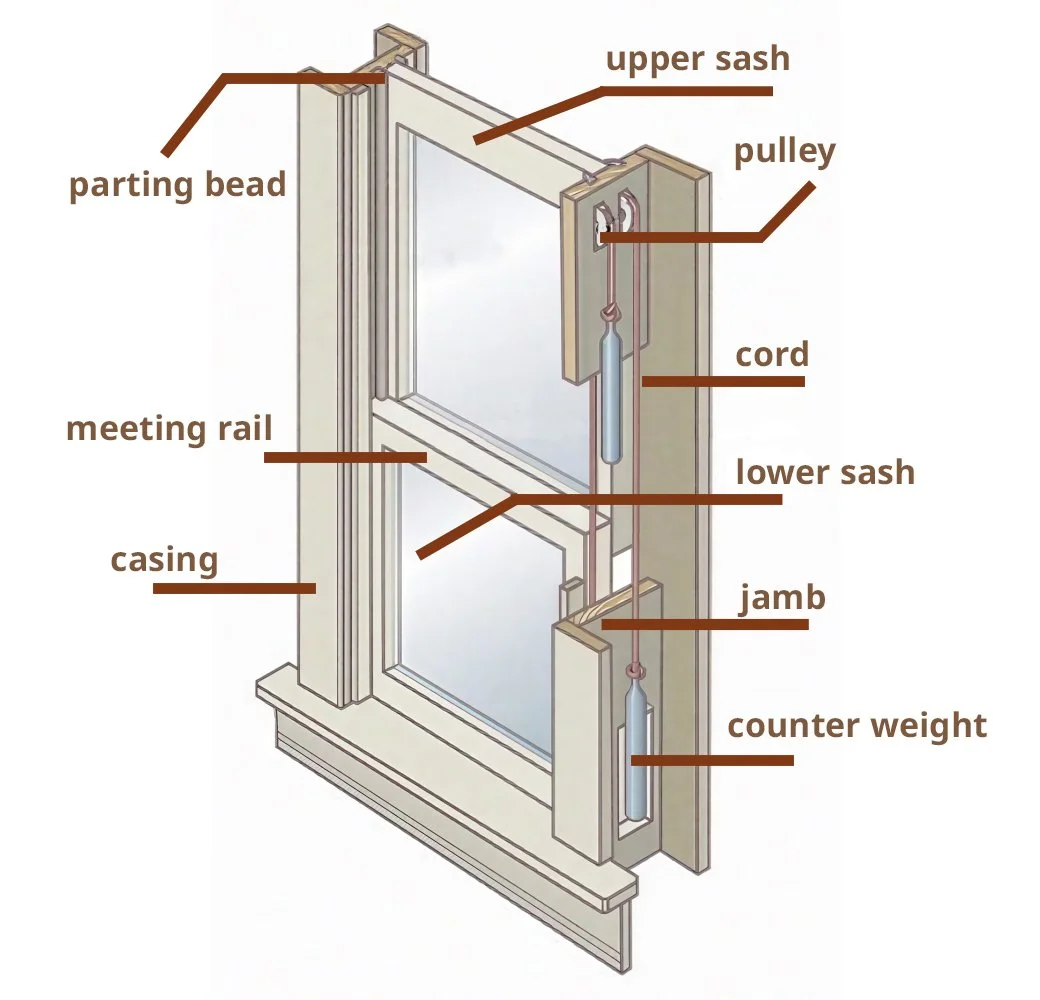 He covered the most common issues with old windows: painted-shut sashes (easy to fix with just a razor blade!), broken ropes, misaligned rails, draftiness, condensation, and rot.