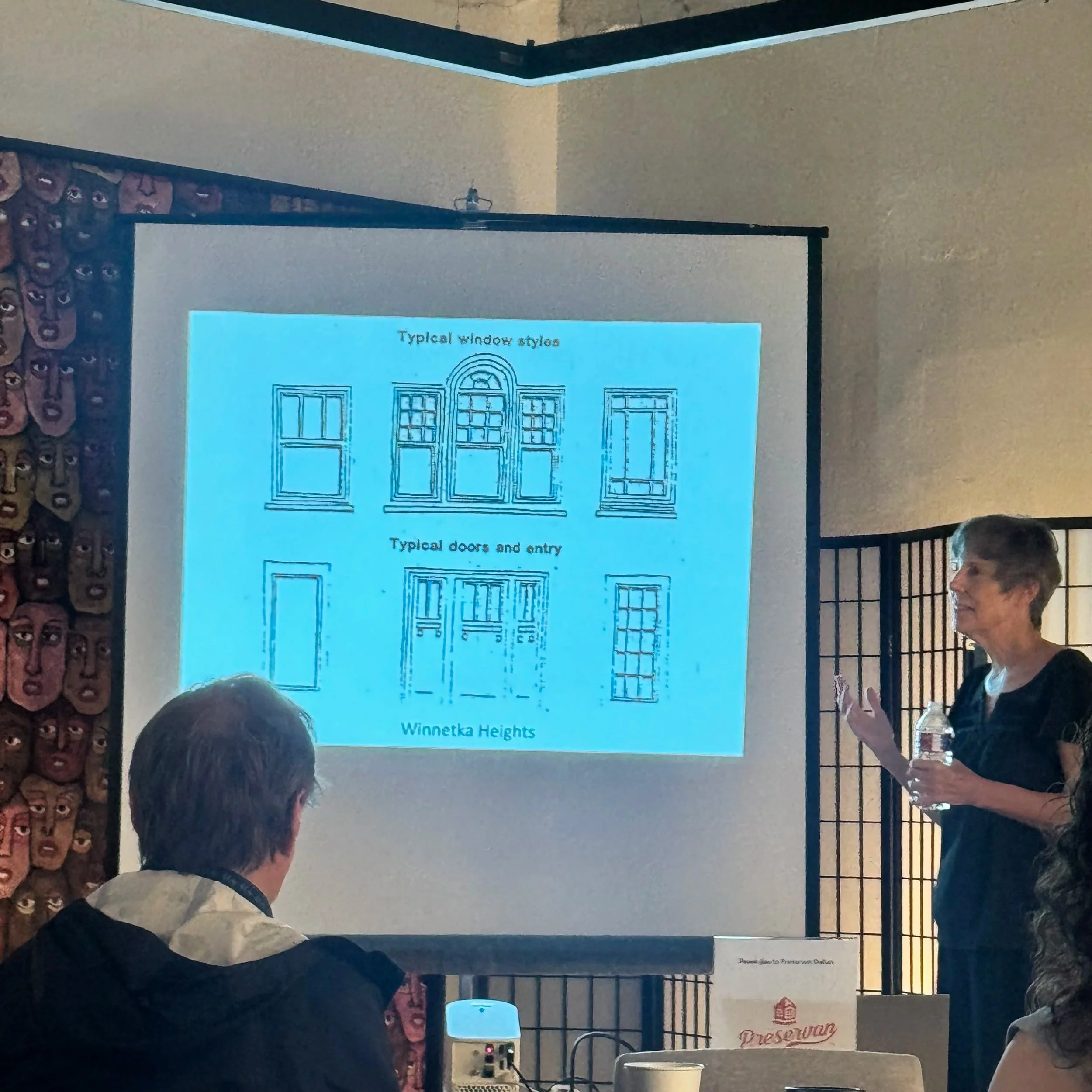 Dr. Evelyn Montgomery, Dallas Landmark Commission Chair, started us off with a crash course on window types and styles. We learned the difference between double-hung and casement windows (casement windows open like a door), and that those beautiful lunette windows — the moon-shaped ones — often sit above rectangular panes.