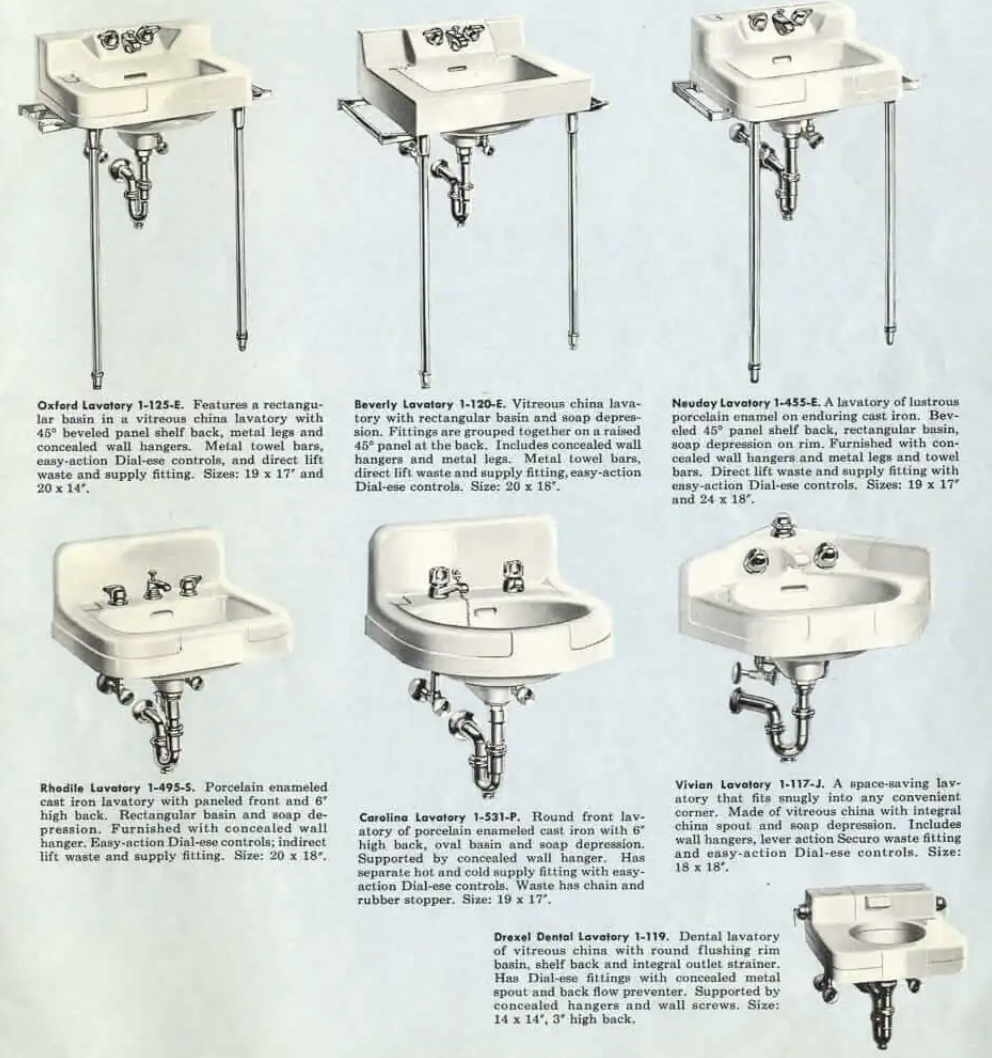 For reference, our sink is the Crane Beverly Lavatory 1-120-E without the legs — the second one shown in the example image. A timeless design and 100% worth preserving.